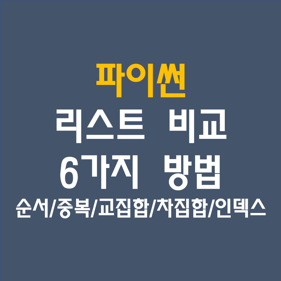 파이썬 리스트 비교 6가지 방법: 순서/중복/교집합/차집합/인덱스 비교 본문