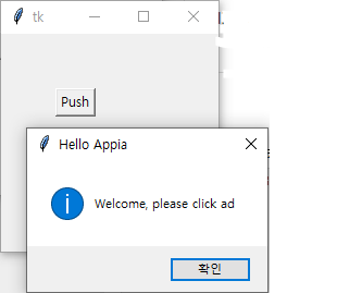 msg = messagebox.showinfo( "Hello Appia","Welcome, please click ad")
