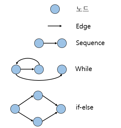 이는 잘 생각해보면, 프로그램 흐름에 있는 코드 경로의 수를 계산하여 Software의 Complexity를 측정하는 방법입니다. 이를 그래프로 나타내면 다음과 같은 부분을 이용하여 나타냅니다.