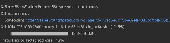 그럼 위의 Numpy를 수행하기 위해서 먼저 설치를 해야 합니다. 설치를 하기 위해서는 다음과 같은 명령어를 실행해 주시면 됩니다.