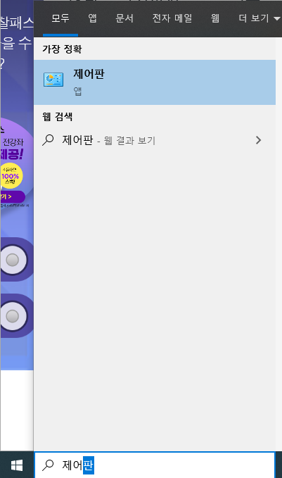 먼저 윈도우 키를 누르시고, [제어판]을 입력해서 제어판을 실행시켜주시길 바랍니다.