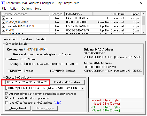 Technitium MAC Address Changer 다운로드 링크 : https://download.technitium.com/tmac/TMACv6.0.7_Setup.zip