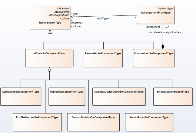 ApplicationSwComponentType NvBlockSwComponentType ComplexDeviceDriverSwComponentType ServiceSwComponentType EcuAbstractionSwComponentType SensorActuatorSwComponentType ServiceProxySwComponentType |