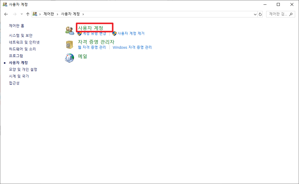 그럼 [사용자 계정]을 클릭해주시면 다음과 같은 메뉴가 나옵니다 .여기에서 다시한번 [사용자 계정] 부분을 클릭해주시길 바랍니다.