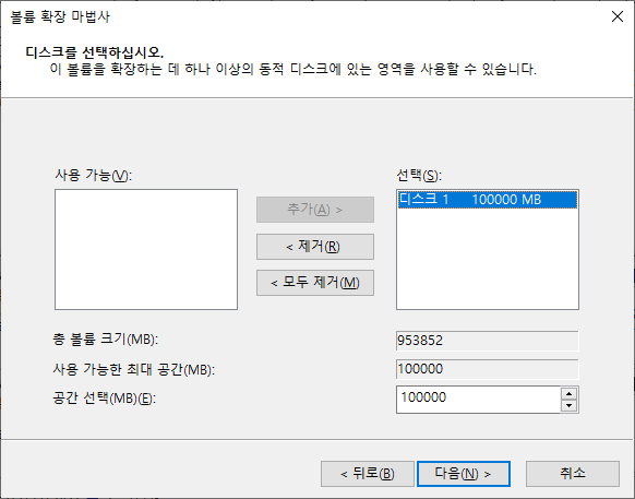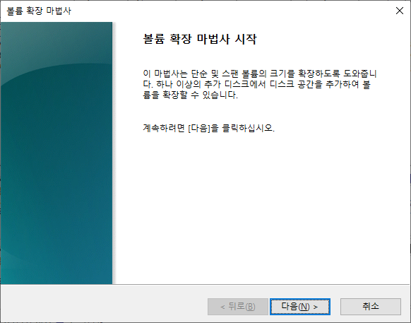 그럼 다음과 같이 볼륨확장 마법사가 시작합니다.