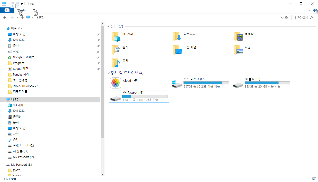 생각보다 파티션 나누기가 어렵지는 않습니다. 그럼 윈도우 탐색기해서도 한번 확인해보겠습니다.