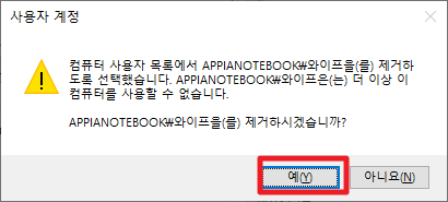 그럼 다음과 같이 경고문이 나타날 것입니다. 여기에서 [예]를 클릭해주 시면 됩니다.