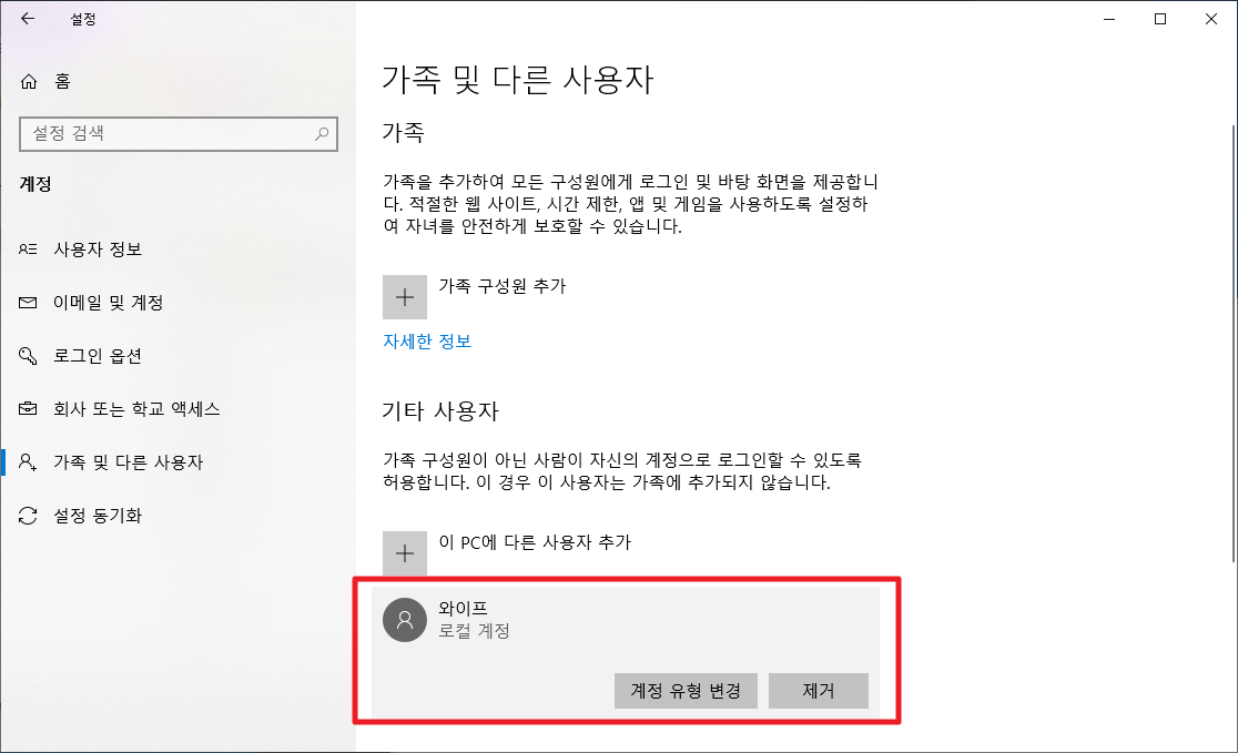 - 윈도우 설정을 이용한 윈도우10 로그인 계정 추가 삭제 방법