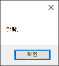 alert을 경우 warning 메시지등과 같이 알림을 주기 위한 경우입니다. 다음과 같은 결과가 나옵니다.