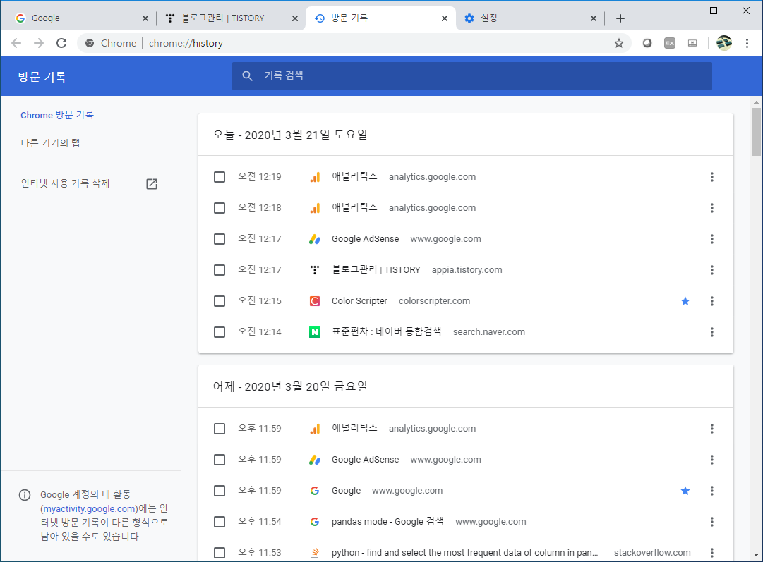 [윈도우10 Windows10]크롬(Chrome) 웹사이트 부분/ 전체 방문 기록 확인 및 삭제하기 본문