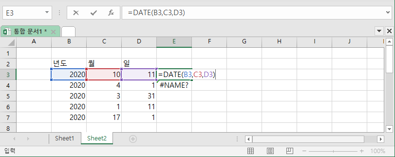 먼저, 날짜 관련 함수에 DATE 함수를 사용해보도록 하겠습니다. (샘플 파일은 하단에 별도로 첨부 드리도록 하겠습니다.)
