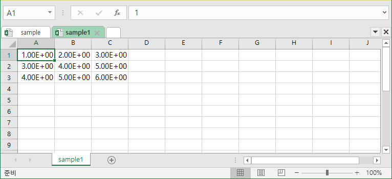 import numpy as np #numpy array 생성 arr = np.array([[1,2,3],[3,4,5],[4,5,6]]) #CSV파일 추출 np.savetxt('sample1.csv',arr,delimiter=",") | cs |