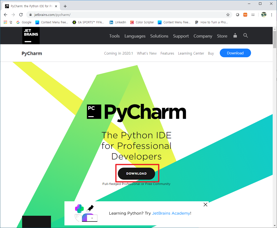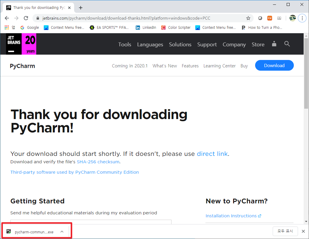 아마 처음 Pycharm 홈페이지로 이동했다면 다음과 같은 화면이 나타날 것입니다.