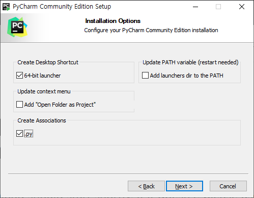 그럼 윈도우의 프로그램상에서 어떻게 등록될지에 대해서 설정을 하게 됩니다. PyCharm(파이참)의 경우 프로그램 제작 회사인 JetBrains로 기본 설정이 됩니다. 수정하셔도 상관없습니다.