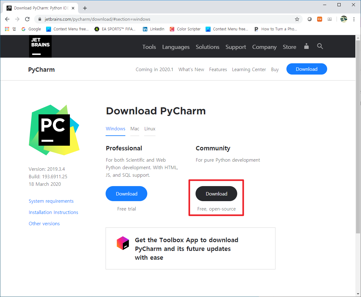 위의 화면에서 Communtiy 버전을 선택해 주시면 됩니다. 물론, 여유 있으신 분들은 Professional 버전을 다운 받으셔서 구매하셔도 되지만, 이 부분을 돈을 구입하나, Open-source 부분을 구매하나 그리 큰 차이를 없을 것으로 보입니다. (물론 완전히 저의 입장에서 이야기 한 부분입니다. 많은 능력은 가신 분들은 유료 버전에서 큰 차이를 만들 수 있습니다.)