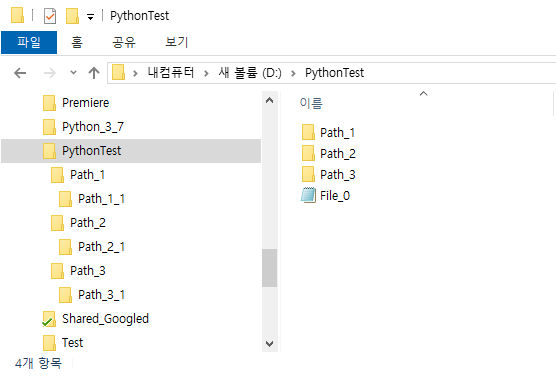 먼저, 다음을 진행하기 앞서서, 테스트를 위해서 다음과 같은 폴더와 파일들을 임의적으로 만들었습니다.
