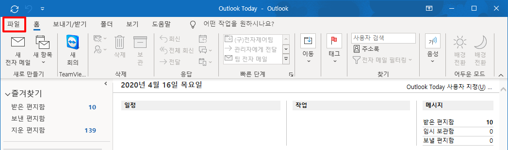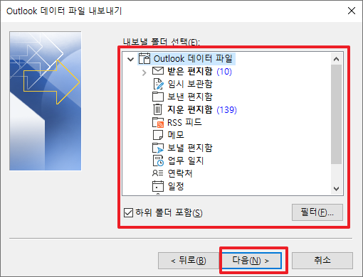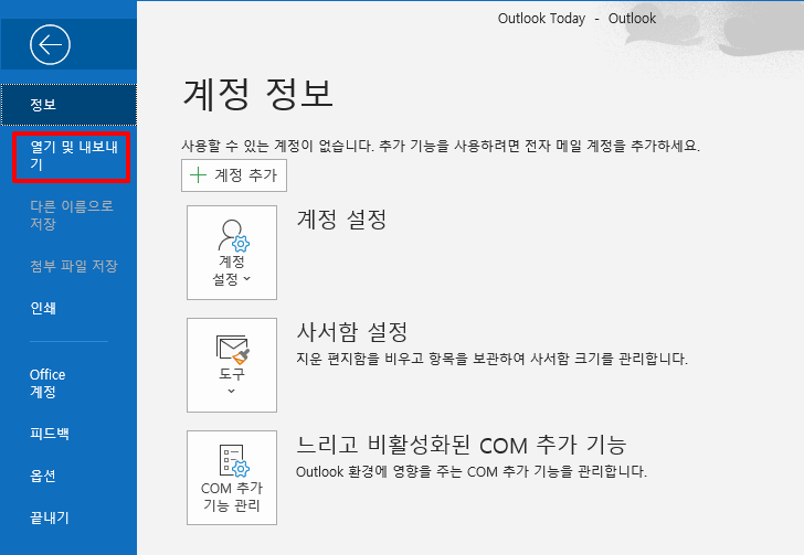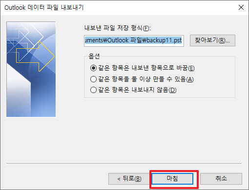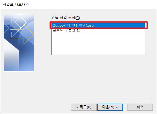 2. 아웃룩(Outlook) 데이터 파일 형태로 추출하기
