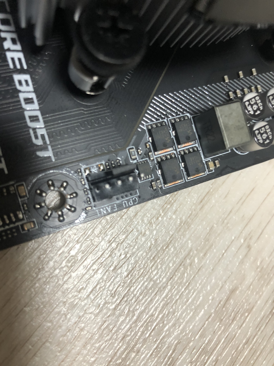 위에서 기본 번들 팬을 장착하셨다면, 기본 번들 쿨러의 전원부를 다음 보이는 부분에 연결해 주시면 됩니다.