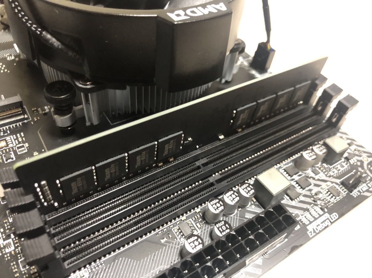 이제 RAM을 설치하도록 하겠습니다. 저는 TEAM GROUP의 32GB DDR4 3200 CL22램을 구매하였습니다. 역시 우리나라가 메모리 관련 세계 1등이지만, 대만 또한 관련해서 많은 제품들이 나오는 것 같습니다. 저도 가격으로 이 램 1개를 구매하였습니다. ( 물론 메인보드 최대 램 용량은 64GB입니다.)