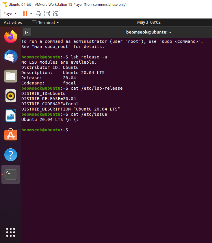 Appia 2020. 6. 12. 07:35리눅스[Linux] 우분투[Ubuntu] 현재 사용하고 있는 버전(Version) 확인하기