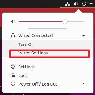 이번 포스팅은 네트워크 관련된 이야기를 해보고자 합니다. 상당수 많은 분들은 자동 아이피 즉 중간에 Router등에서 DHCP로 IP로 자동으로 할당을 해줍니다. 하지만, 특정 경우 각 고정(Static) 아이피(IP) 설정하는방법에 대해서 이야기를 드리고자 합니다. 먼저, 우측 상단에 전원 모양의 아이콘을 클릭하면 다음과 같이 메뉴가 나타납니다. 여기에서 [Wired Settings] 부분을 클릭해 주시길 바랍니다.