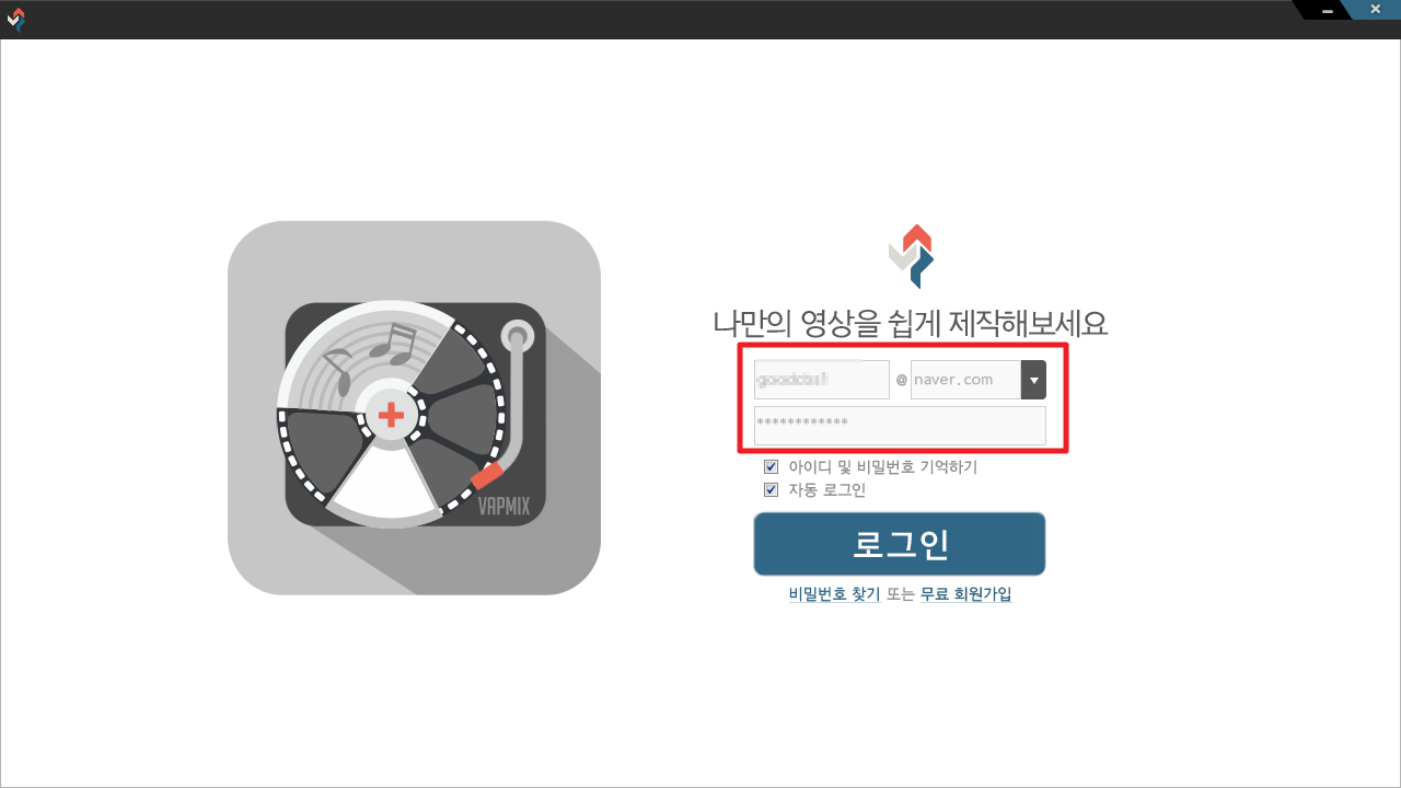 여기에서 회원들만 사용이 가능합니다. 따라서, 만약에 뱁믹스를 처음 사용하시는 분들이라면 로그인 화면 밑에 보이는 [무료 회원 가입]버튼을 눌러 회원가입을 해주시면 됩니다.
