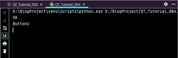 위의 GUI에서 버튼을 클릭하면, python 콘솔 상에 다음과 같이 OK가 나타납니다.