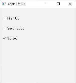 이번에는 특정 조건을 두도록 하겠습니다. 특정 조건에서 체크박스(QCheckBox)를 비활성화 하도록 하겠습니다. 일단 3개의 체크박스(QCheckBox)중에 2개가 체크되면 나머지 하나가 비활성화되고, 나머지를 다시 클릭하면 비활성화 된것이 다시 활성화 됩니다.