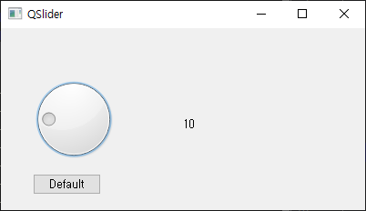 위의 코드를 실행하시면 위에 첨부한 그림과 같은 GUI가 나타납니다. 여기에서 원형의 부분을 돌려서 값을 변경하면, 현재의 값이 우측에 라벨에 표시되는 형태입니다.
