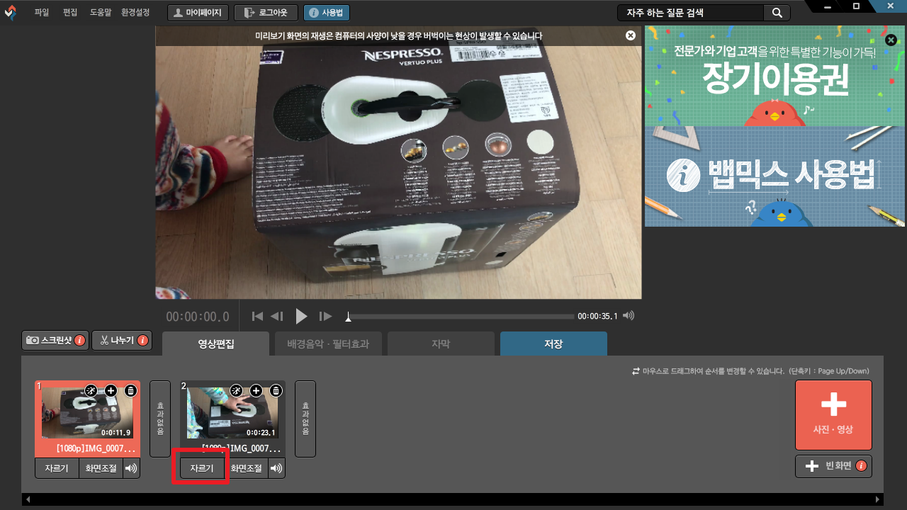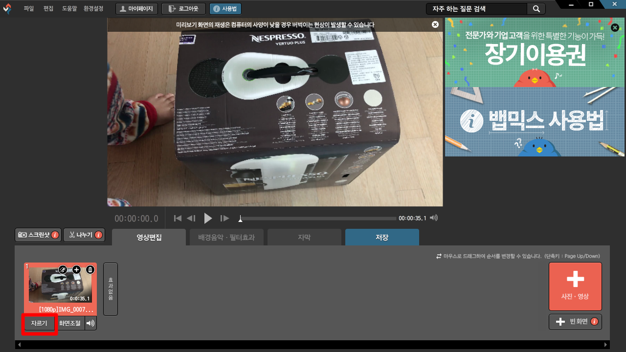 윈도우10[windows 10] 추천 무료 동영상 편집 프로그램 뱁믹스 동영상 나누기 자르기