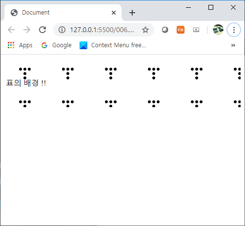 이제 특정 Tag의 속성으로 입력이 가능합니다. 예를 들면 표의 배경등에 이미지를 배경으로 설정할 수 가 있습니다. 그럼 한번 살펴보겠습니다. 표를 토대로 관련된 예를 적용해보도록 하겠습니다. 표의 경우 다음과 같은 형태로 적용이 가능합니다.