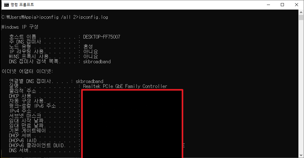 [윈도우10, windows10] 명령 프롬프트(CMD) 명령어 실행 결과 파일로 추출하기