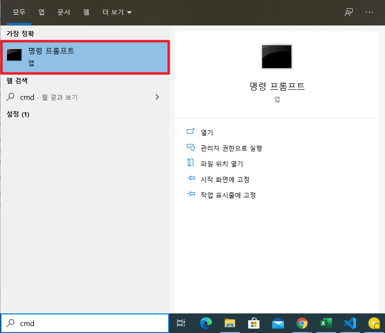 Appia 2020. 8. 14. 07:18[윈도우10, windows10] 명령 프롬프트(CMD)