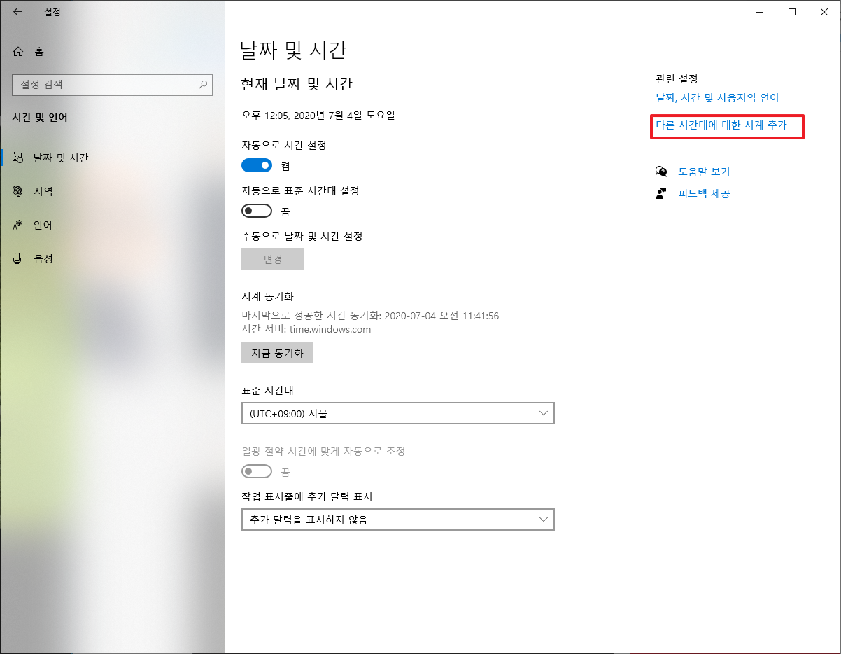 [윈도우10, windows10] 다른 나라 시간 표시하기(MultiTime zone) 본문