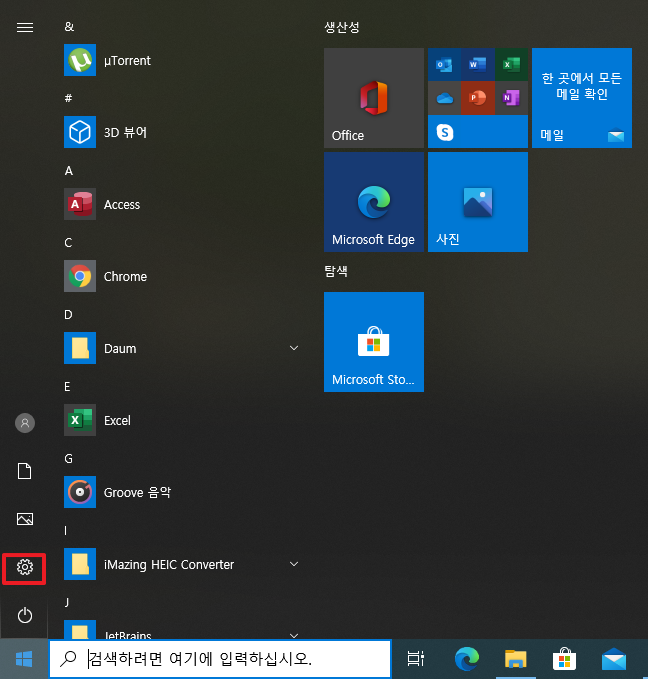 먼저 윈도우 메뉴탭에서 보시는 바와 같이 설정 버튼을 눌러 주시길 바랍니다.