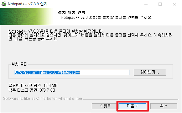 위와 같은 과정을 노트패드(Notepad++)을 설치할 수 있습니다.