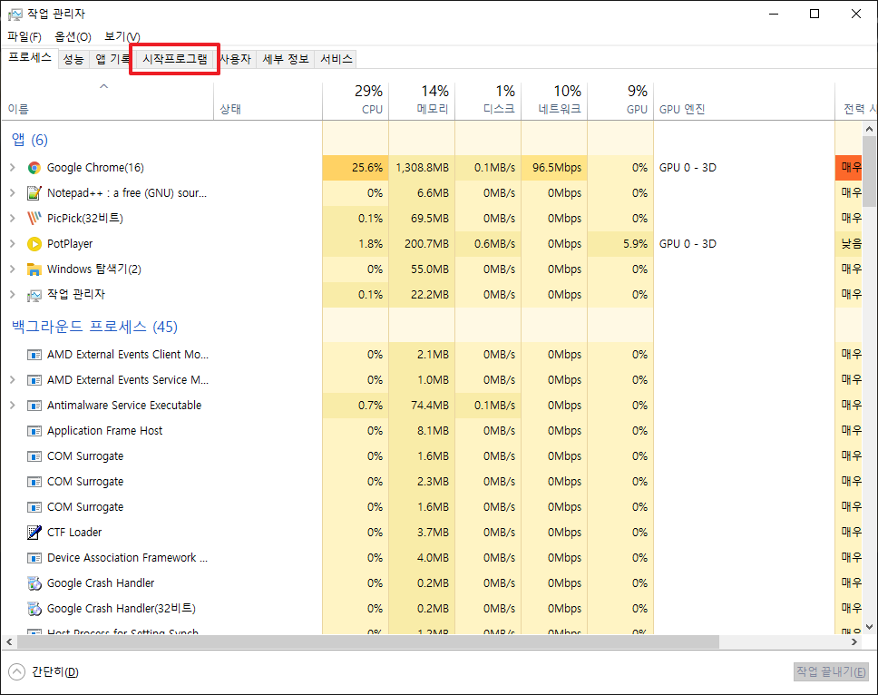 [윈도우10, windows10] 시작 프로그램 등록, 삭제, 비활성하기