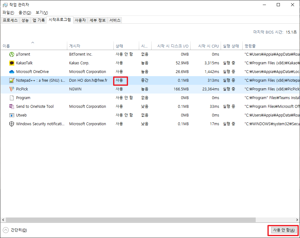 [윈도우10, windows10] 시작 프로그램 등록, 삭제, 비활성하기 본문