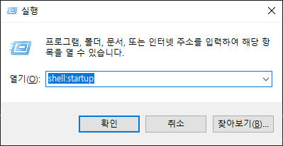 먼저 windows키 + 'R'를 입력하여 실행창을 나타나게 해줍니다. 여기에 'shell:startup'을 입력하여 주시길 바랍니다.