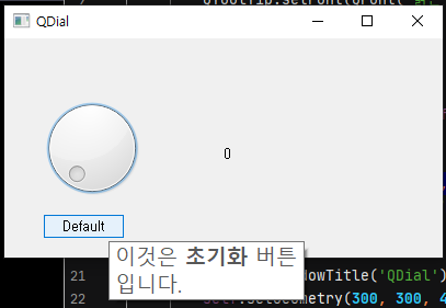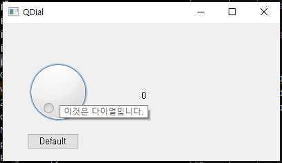 지금 다이얼(QDial)위에 마우스 커서를 가져다 놓면 다음과 같은 설명이 나타납니다. 그럼 예시로 작성한 코드를 한번 살펴보겠습니다.