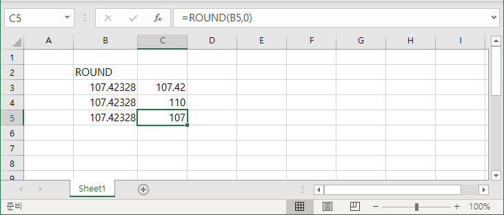 | =ROUND(해당 셀, 표시 자릿수) |