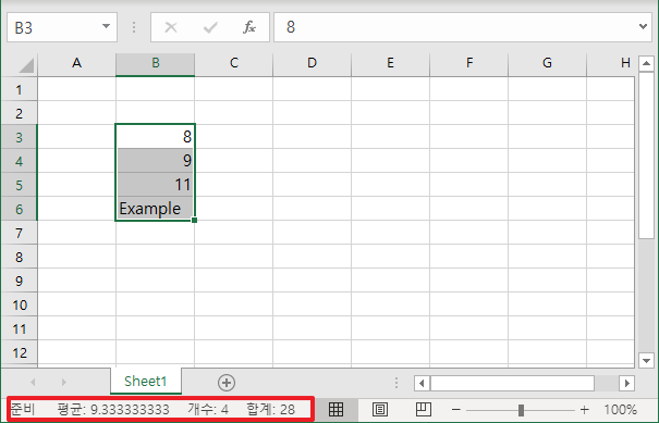 엑셀 작업을 하다보면, 특정 셀들을 선택하면 원하는 정보들을 자동으로 하단에 표시를 해주곤 합니다. 다음 그림을 먼저 참조해보겠습니다.
