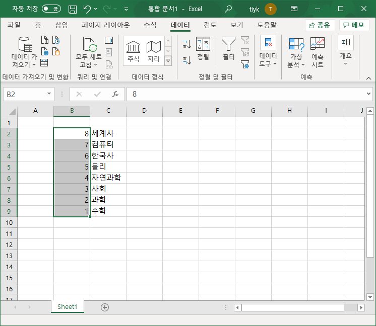 위에서 제가 내림차순을 적용해보면 다음과 같은 결과가 나타납니다. 즉 올림차순이란, 0,1,2... 형태로 정렬이 되고, 내림차순이라 8,7,6....2,1 행태로 정렬이 됩니다.