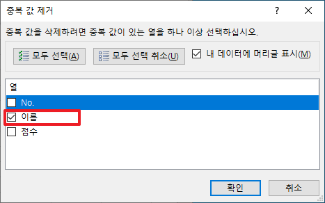 그럼 다음과 같이 이름만 중복된 항목에 대해서 삭제를 할 수도 있습니다.