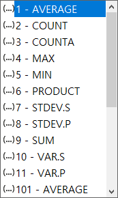 =SUBTOTAL(Funtion_Num, CELL범위/CELL) |