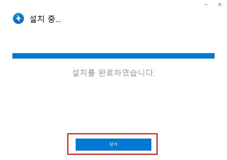 설치가 완료되면, "설치를 완료하였습니다." 라는 문구가 나타날 것입니다. 다음과 같이 문구가 나타나면 "닫기" 버튼을 클릭하여 주시길 바랍니다.