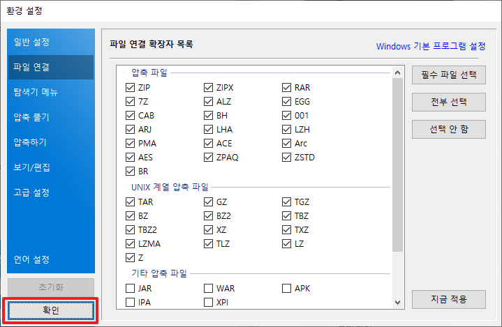 그리고, 다음과 같이 환경설정 화면이 나타날 것입니다. 이 때, "확인"버튼을 클릭하시면 자동 적용이 됩니다.