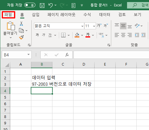 먼저 좌측상단에 [파일] 부분을 클릭하여 주시길 바랍니다.