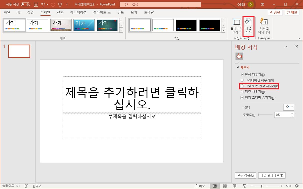 파워포인트[Powerpoint] PPT 슬라이드 배경화면 넣기, 배경화면에 이미지 적용하기 본문