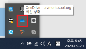 그리고, 우측 하단에 다음과 같이 연결이 되어 있는 부분에 대해서 파란색 구름 표시로 원드라이브가 정상적으로 연결되어 있음을 보여줍니다.